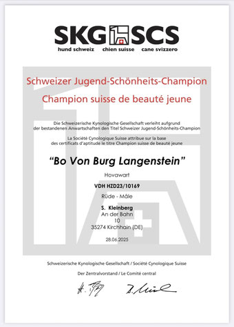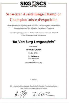 Der erste Nachkomme von unserem Canjo hat seine Zuchzulassung in der HZD erhalten: